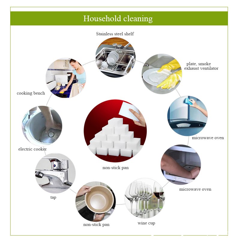 Maaginen sienikutsutaan myös nano sienellä, siivous sienellä, maagisen pyyhekumin, omaksuu neljännen sukupolven uuden nanoteknologian, jolla on Foamin erityinen reikarakenne, on uusia ympäristöystävällisiä siivoustuotteita. Sillä on mauton, myrkyttömän ja vaarattoman, puhtaan valkoisen ominaisuudet on nano sienen pääväri.